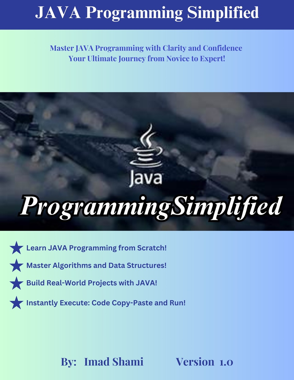 Unlock the power of Java with "Java Programming Simplified," an essential guide crafted by seasoned Software Engineer Imad Shami. With over three decades of experience in the IT industry, Imad brings his passion for elegant code and teaching prowess to help you conquer the world of Java programming.